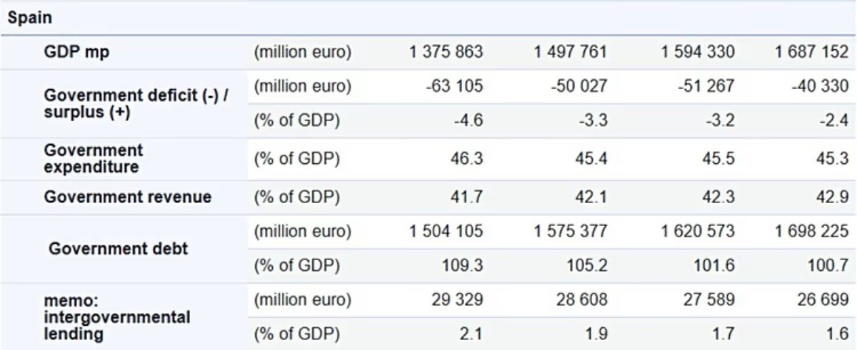 Σε ευρωπαϊκό επίπεδο, η Ισπανία εξακολουθεί να βρίσκεται μεταξύ των χωρών με το υψηλότερο δημόσιο χρέος. Συγκεκριμένα, κατατάσσεται πέμπτη στην Ευρωπαϊκή Ένωση ως προς τον δείκτη χρέους, γεγονός που υπογραμμίζει τη σημασία της δημοσιονομικής διαχείρισης τα επόμενα χρόνια.