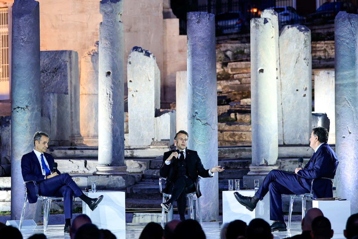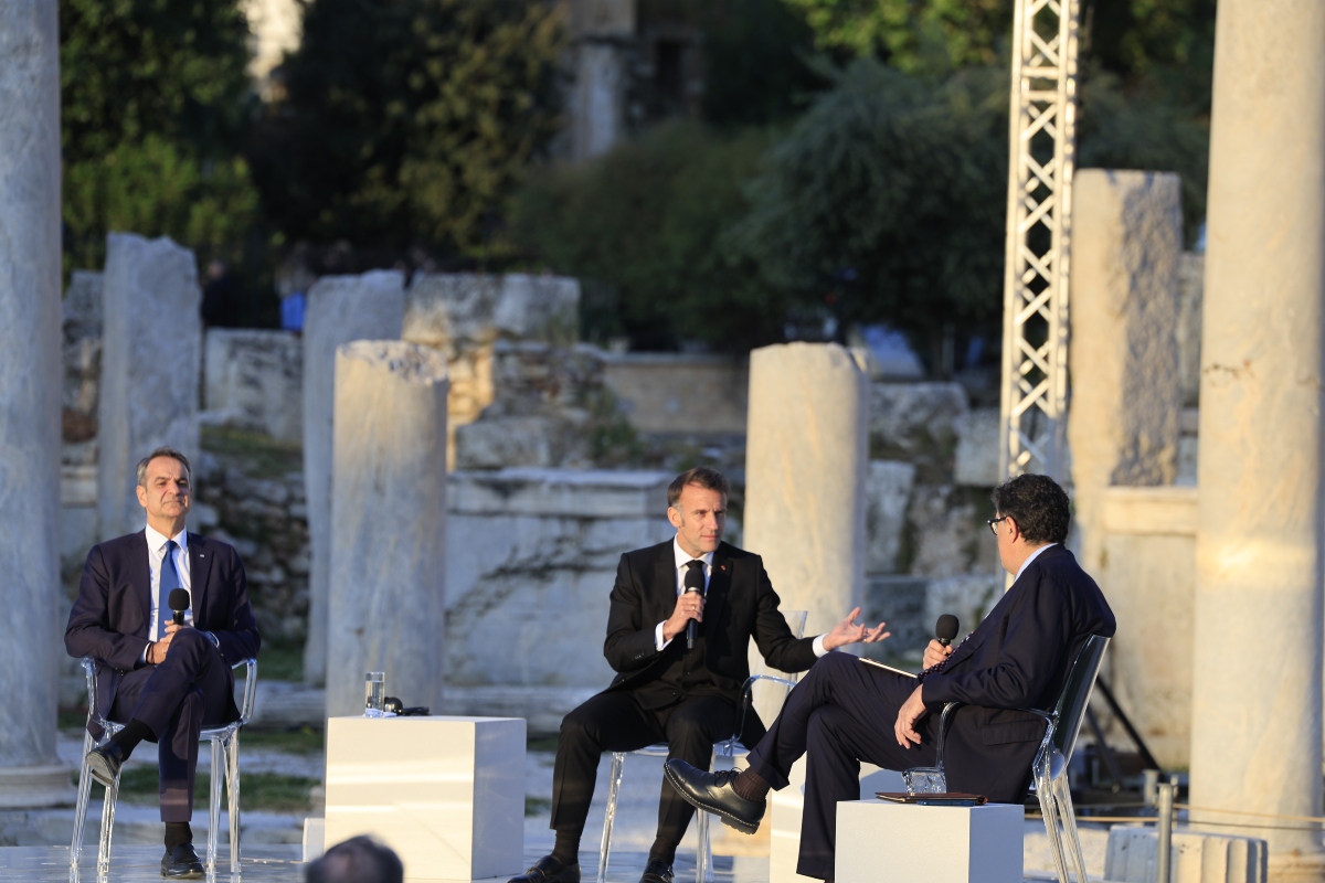 Στην εμβληματική Ρωμαϊκή Αγορά Αθηνών, ο πρωθυπουργός Κυριάκος Μητσοτάκης και ο πρόεδρος της Γαλλίας Εμανουέλ Μακρόν έστειλαν ένα ηχηρό μήνυμα: η Ευρώπη εισέρχεται σε μια περίοδο που θα κρίνει την ίδια της την υπόσταση.