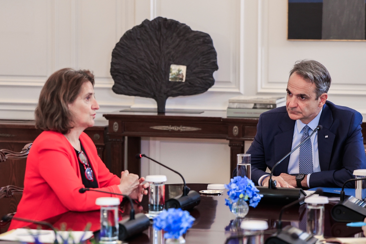 «Όταν κοιτάζω τα στοιχεία, πιστεύω ότι η Ελλάδα έχει κάνει εντυπωσιακή δουλειά όσον αφορά τη μείωση των εκπομπών διοξειδίου του άνθρακα σε σύγκριση με το 1990. Μαζί με άλλες χώρες του Νότου, συμπεριλαμβανομένης της Ισπανίας, είμαστε πρωτοπόροι στις ανανεώσιμες πηγές ενέργειας», είπε, μεταξύ άλλων, ο πρωθυπουργός Κυριάκος Μητσοτάκης στη συνάντηση που είχε το πρωί στο Μέγαρο Μαξίμου με την Εκτελεστική Αντιπρόεδρο της Ευρωπαϊκής Επιτροπής, αρμόδια για την Καθαρή, Δίκαιη και Ανταγωνιστική Μετάβαση, Tερέσα Ριμπέρα.